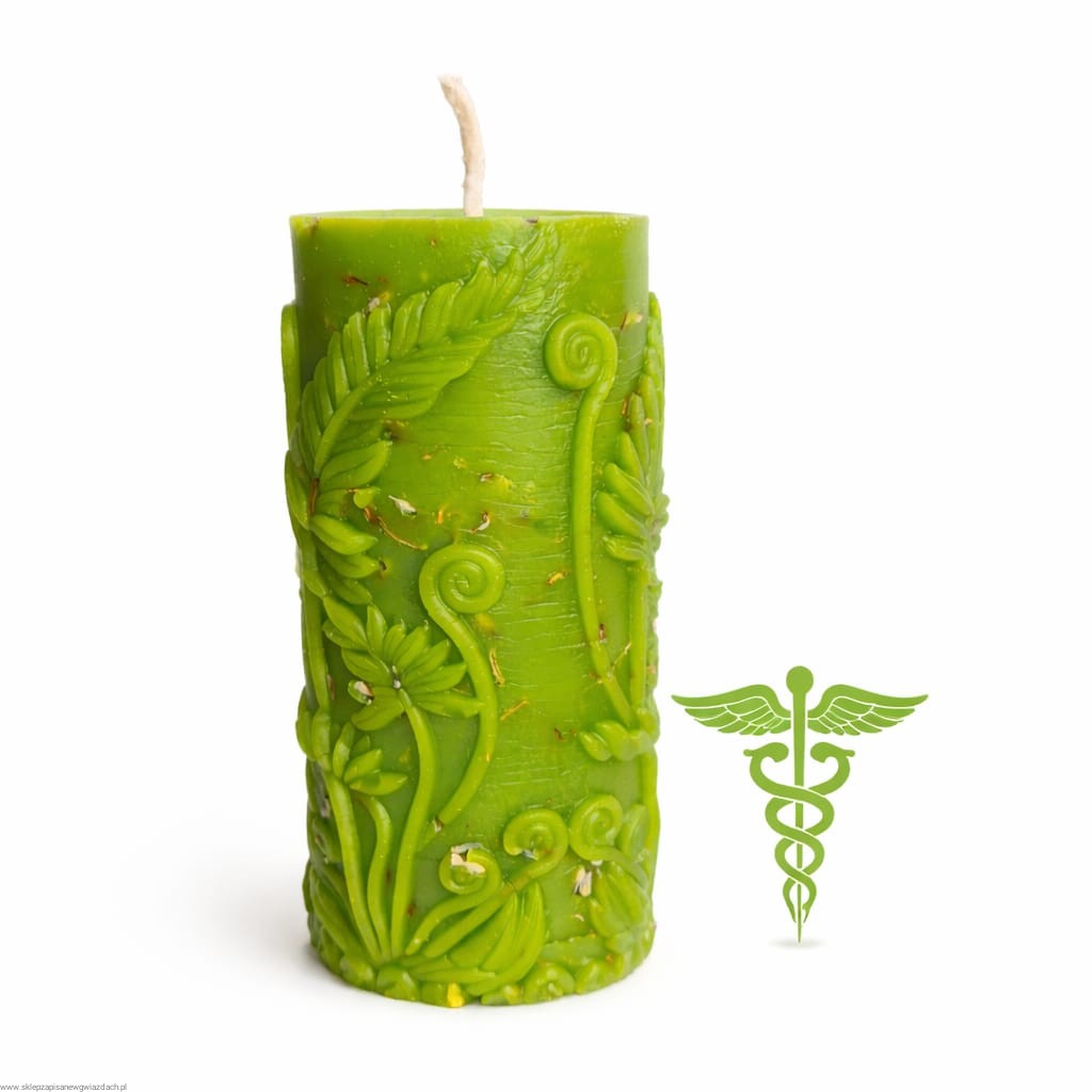 Ta zielona, botaniczna świeca została stworzona, aby wspierać Twoje rytuały związane z intencjami zdrowia, uzdrawiania i wewnętrznej równowagi. Naturalny design i delikatne, roślinne dodatki czynią ją zarówno piękną ozdobą, jak i wyjątkowym narzędziem energetycznym.