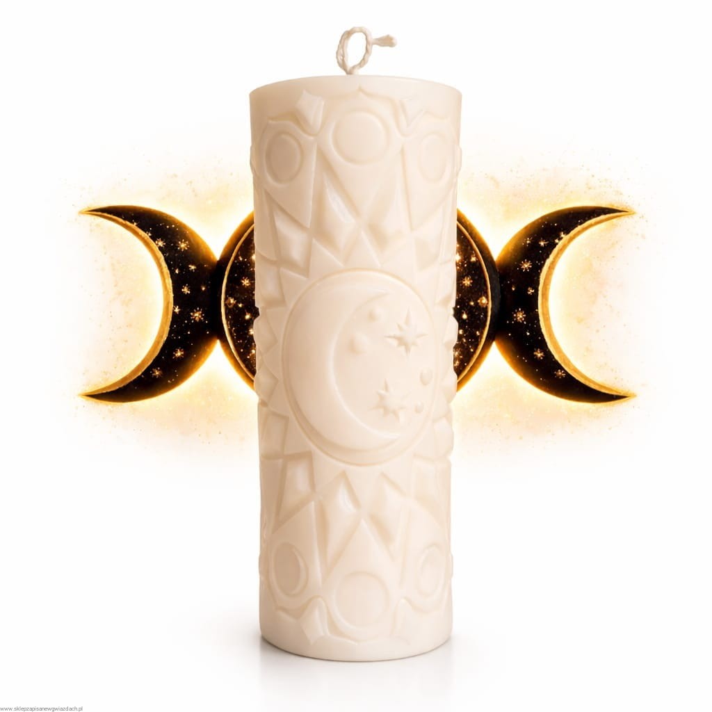 ✨Świeca Sojowa z Fazami Księżyca do Rytuału Pełni i Nowiu Biała✨
