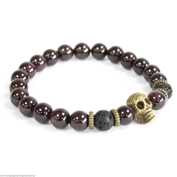 Bransoletka Czaszka & Heliotrop to odważny, a zarazem pełen mocy dodatek, który łączy symbolikę ochrony, siły i regeneracji. Czaszka to symbol, który często reprezentuje transformację, przezwyciężanie trudności i początek nowego cyklu, podczas gdy heliotrop, znany także jako "kamień krwi", jest potężnym kamieniem ochronnym, który wspiera zdrowie i witalność.