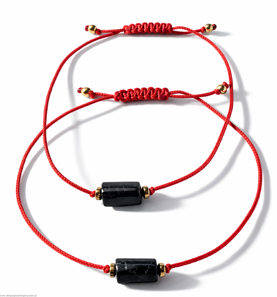- Materiał: Turmalin, Hematyt, czerwona nitka