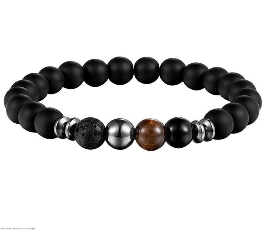 Bransoletka Męska Czarny Agat + Lawa + Turmalin + Hematyt + Tygrysie Oko