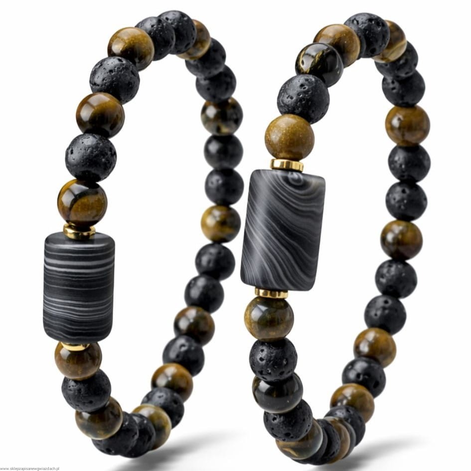✨ Bransoletka męska z Sardonyksu, Lawy Wulkanicznej i Tygrysiego Oka ✨