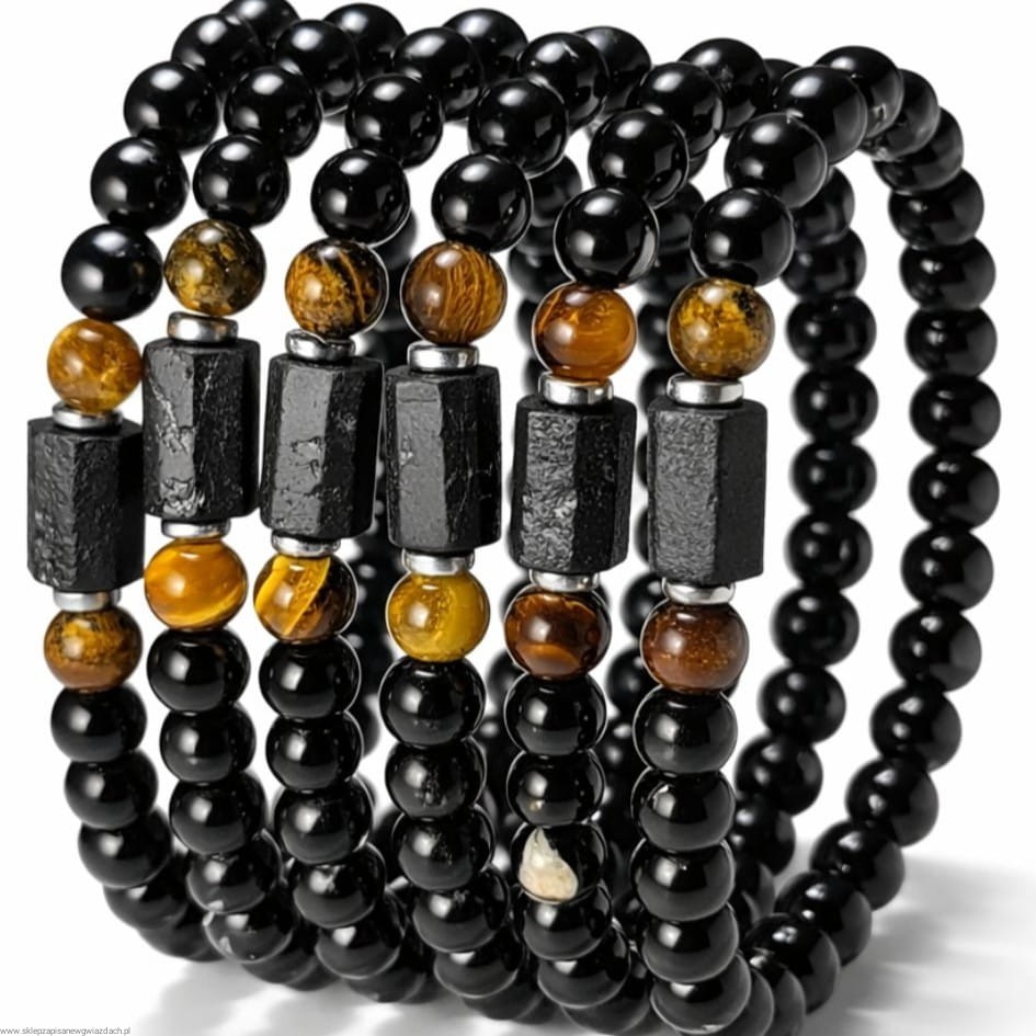 Ta wyjątkowa bransoletka łączy w sobie siłę dwóch potężnych kamieni ochronnych – Czarnego Turmalinu i Tygrysiego Oka. Razem tworzą energetyczną tarczę, która wspiera równowagę, odwagę i wewnętrzną stabilność.