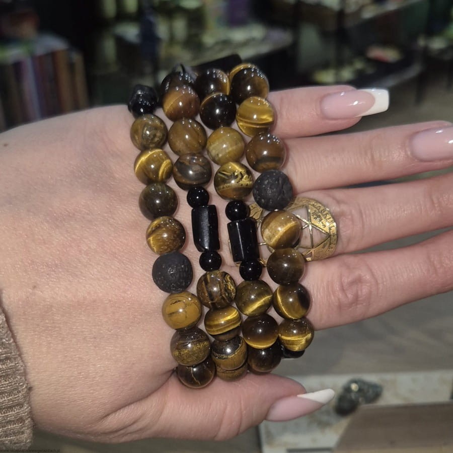 Ta wyjątkowa bransoletka łączy w sobie siłę dwóch potężnych kamieni ochronnych – Czarnego Turmalinu i Tygrysiego Oka. Razem tworzą energetyczną tarczę, która wspiera równowagę, odwagę i wewnętrzną stabilność.