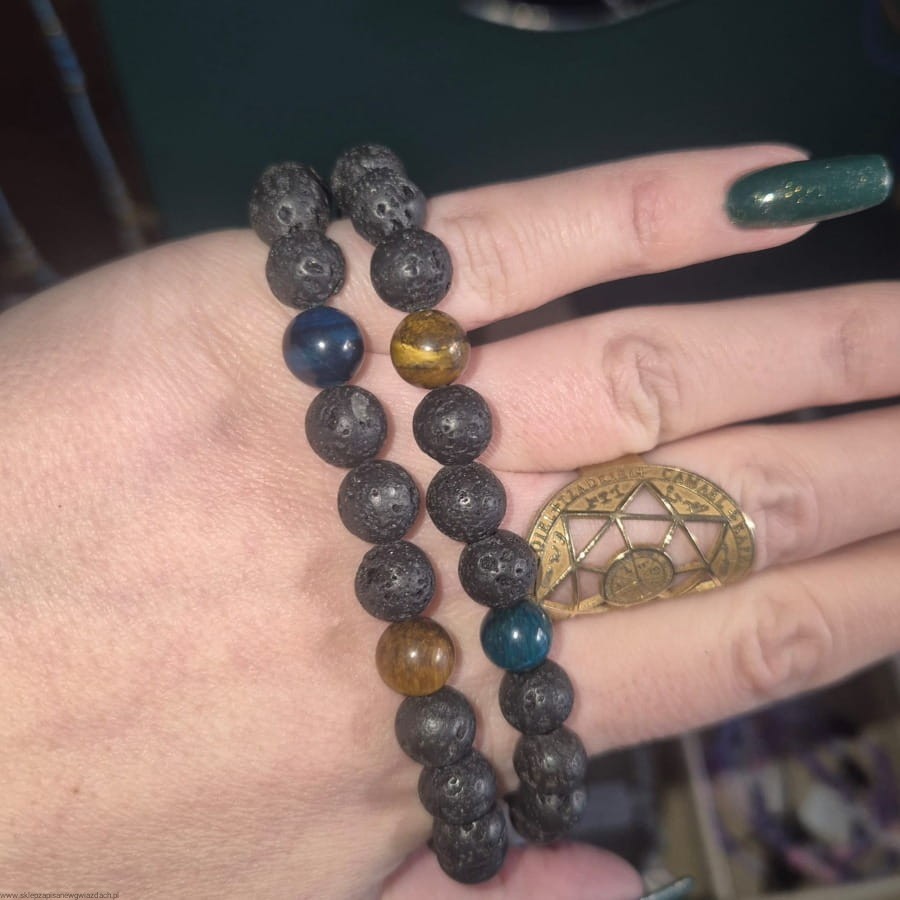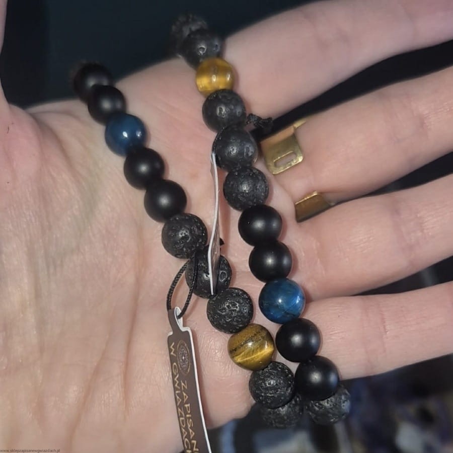 ✨Ta męska bransoletka łączy surową siłę, stabilność i świadome działanie. Połączenie lawy wulkanicznej, tygrysiego oka, czarnego agatu oraz niebieskiego tygrysiego oka tworzy mocną, uziemiającą energię, która wspiera opanowanie, pewność siebie i wewnętrzną odporność w codziennych wyzwaniach.