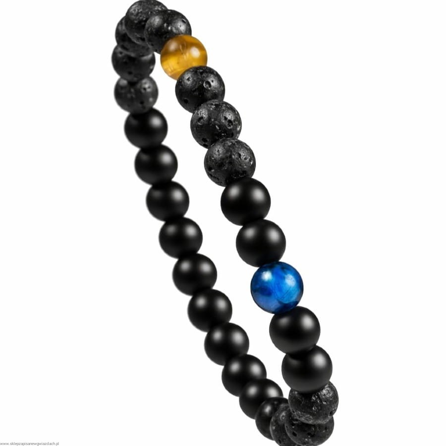 Bransoletka męska Lawa + Tygrysie Oko + Czarny Agat + Niebieskie Tygrysie Oko
