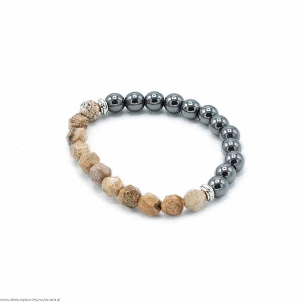 - Fasetowany jaspis obrazkowy: Każdy kamień posiada unikalny wzór i ciepłe odcienie, które nadają bransoletce wyjątkowy charakter.