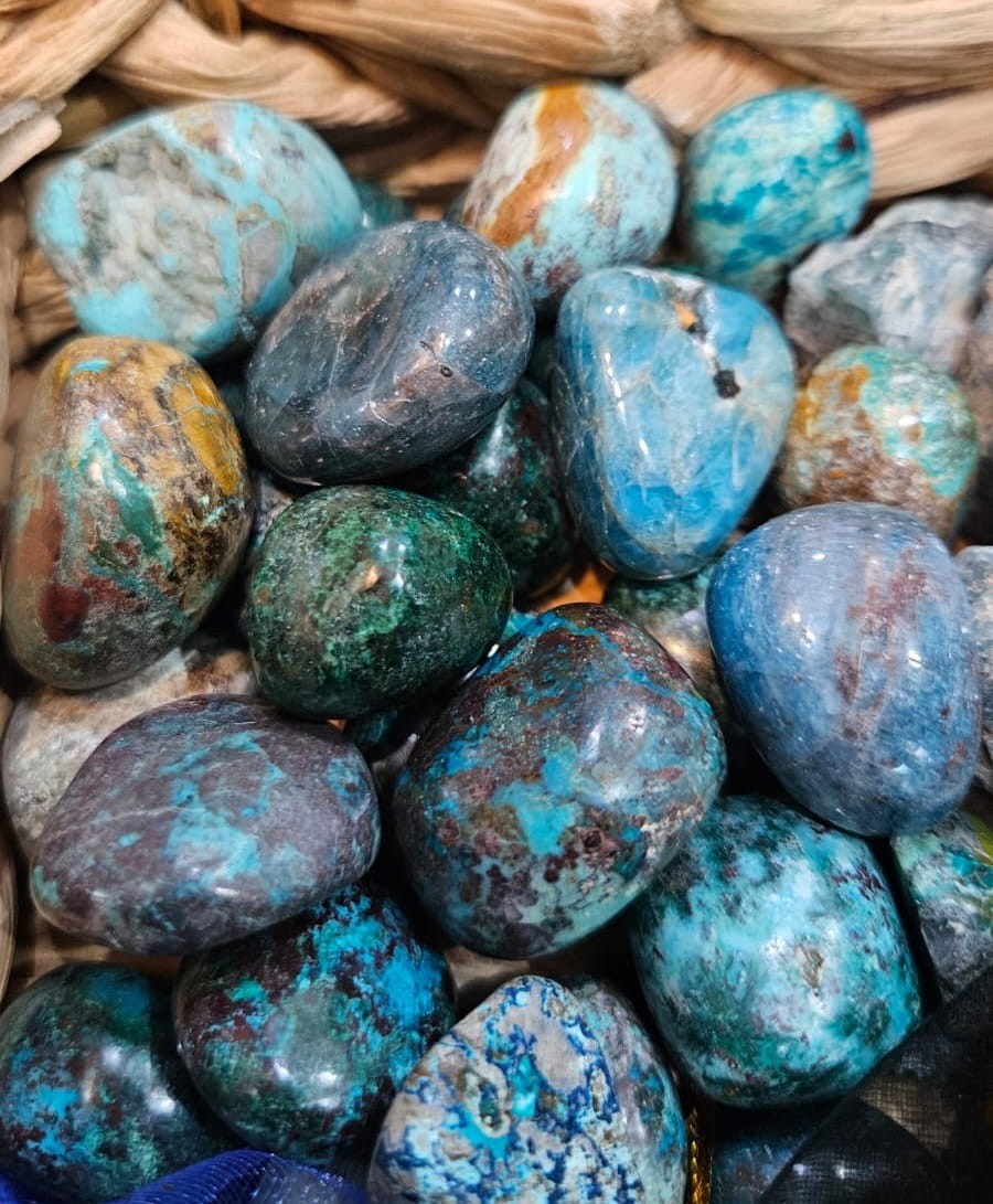 Chryzokola to kamień harmonii, komunikacji i wewnętrznego spokoju. Od wieków ceniony jako talizman mądrości i równowagi emocjonalnej, pomaga odnaleźć ciszę w sercu oraz wyrażać swoje myśli w sposób łagodny, ale pewny. Jego kojąca, niebiesko–zielona barwa działa jak balsam dla duszy, wprowadzając uczucie ukojenia i głębokiego relaksu.