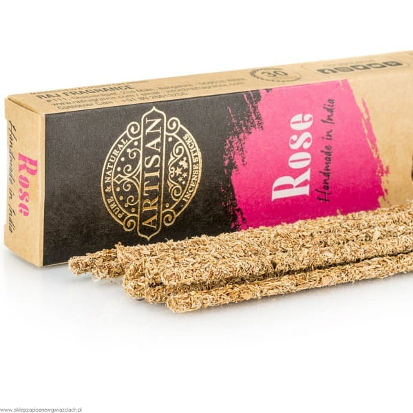 Aromat róży w kadzidełkach Artisan to doskonale zbalansowana kompozycja, łącząca słodkie i zmysłowe nuty. Naturalne składniki, w tym płatki róży, tworzą atmosferę sprzyjającą relaksowi, medytacji czy romantycznym momentom.
