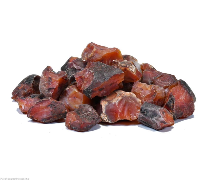 Opis Fizyczny: Nasz surowy karneol występuje w różnych odcieniach czerwieni i pomarańczy, z naturalnymi inkluzjami i wzorami. Jego surowe krawędzie i naturalna struktura podkreślają jego piękno i moc. Każdy egzemplarz jest unikalny pod względem wzoru i intensywności barw, co czyni go niepowtarzalnym dodatkiem do Twojej kolekcji kamieni naturalnych.