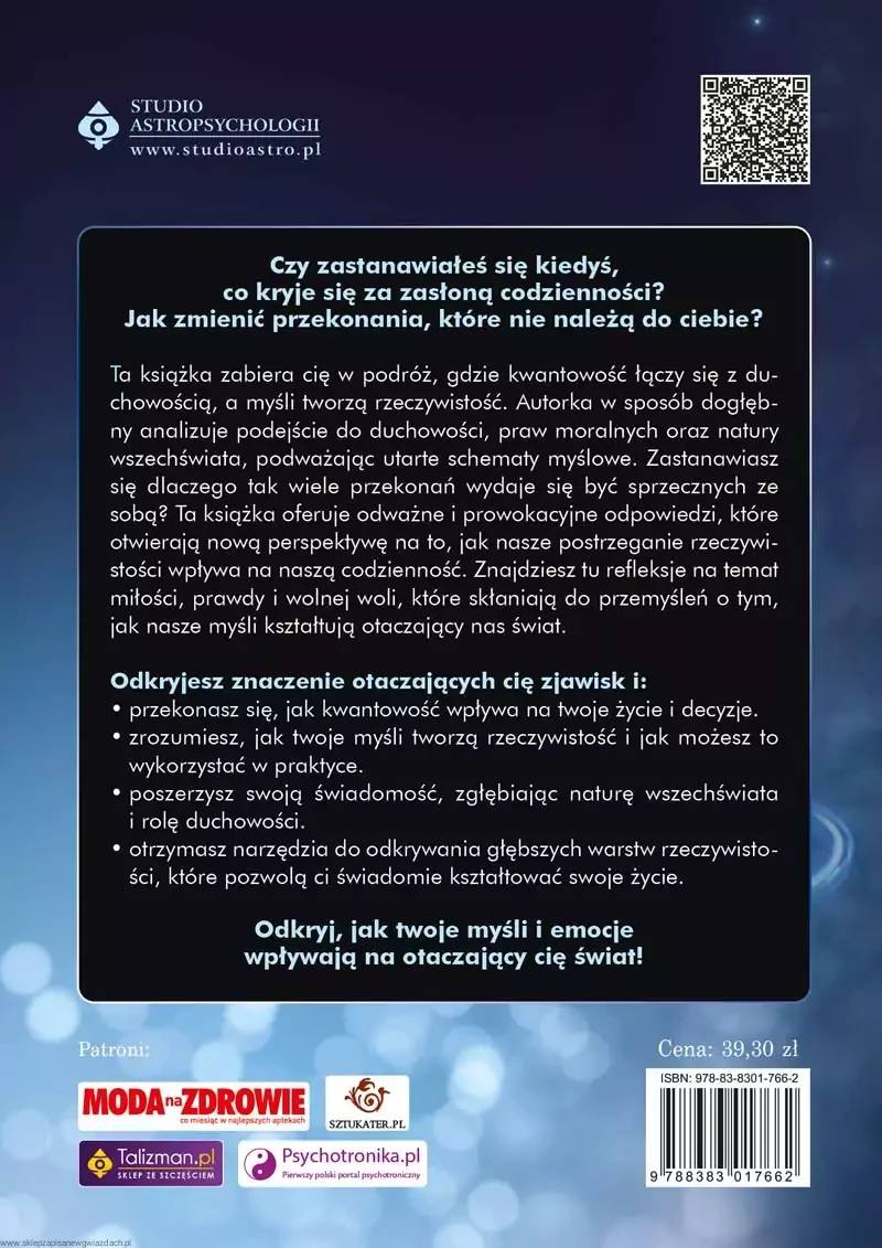 Co jeśli bilokacja, teleportacja czy nadświadomość to nie tylko teorie, ale realne koncepcje, które mogą wpłynąć na twoje życie? Książka zabierze cię w podróż po alternatywnych modelach rzeczywistości, ukazując, jak duchowość i świadomość kwantowa mogą poszerzyć twoje postrzeganie świata. Odkryjesz filozoficzne i metafizyczne aspekty istnienia, które pomogą ci spojrzeć na życie z zupełnie nowej perspektywy.