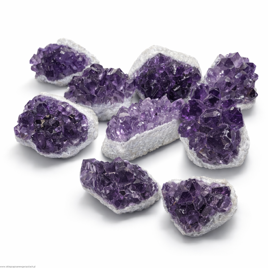 ✨ Mała szczotka ametystowa to naturalna formacja kryształów ametystu osadzonych na jasnej skale macierzystej. Jej drobne, ostro zakończone kryształy tworzą harmonijną strukturę, która emanuje spokojną, oczyszczającą energią. Każdy egzemplarz jest unikatowy – różni się odcieniem fioletu, kształtem i intensywnością kryształów.