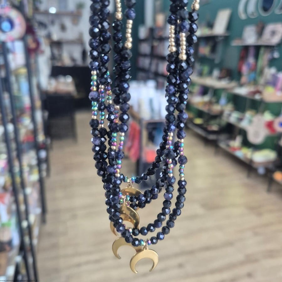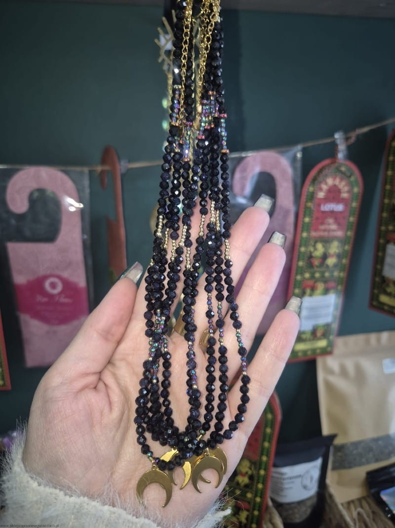 To amulet dla kobiety, która czuje swoją moc, ufa intuicji i nie boi się własnego cienia. Połączenie Lunuli – pradawnego symbolu kobiecości i ochrony – z kamieniami o silnej, nocnej energii tworzy naszyjnik rytualny, chroniący aurę i wzmacniający wewnętrzną siłę.