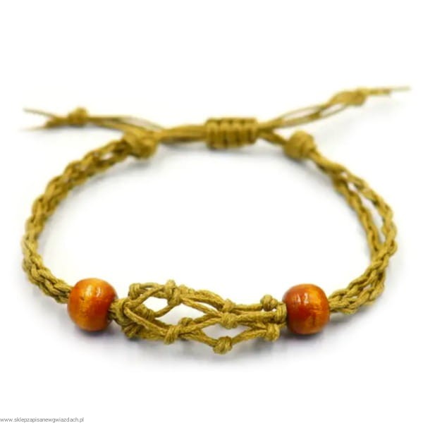 Dodaj odrobinę stylu boho-chic do swojej biżuterii! Regulowany sznurek z delikatnym siateczkowym wzorem i drewnianymi koralikami zapewnia wygodne dopasowanie.