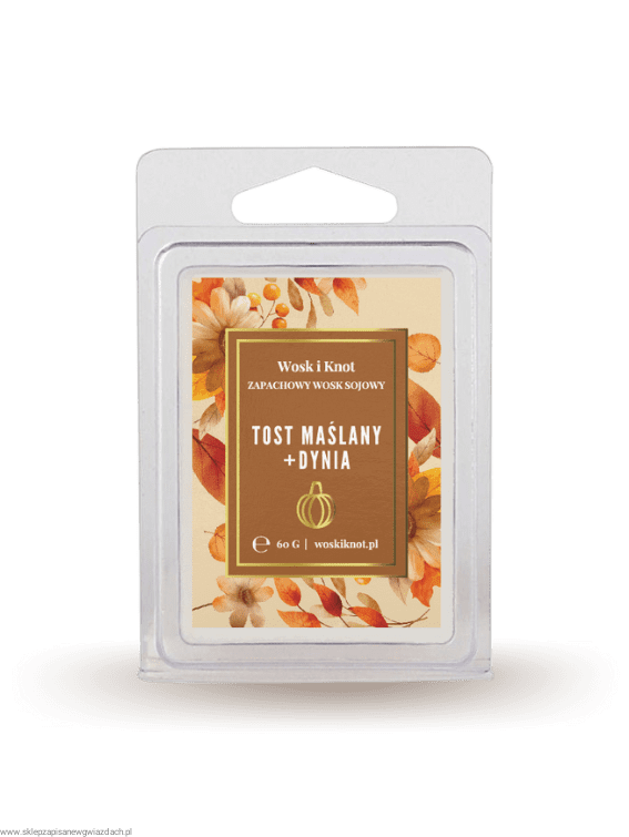 Wosk Zapachowy Tost Maślany & Dynia – kolejna świeca obok której nie da się przejść obojętnie! Zapach maślanego tosta, oblanego gorącym karmelem z nutą dyniowych przypraw. brzmi nieźle prawda?! Całość uzupełnia syrop klonowy i laska wanilii. Świeca, którą ma się ochotę zjeść! Koniecznie dodajcie ją do koszyka!